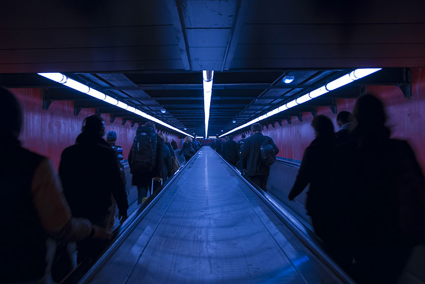 L’accueil glacial du tourniquet métallique, hérissé du cliquetis grinçant de la validation de mon ticket, me plonge directement dans l’univers journalier des usagers.