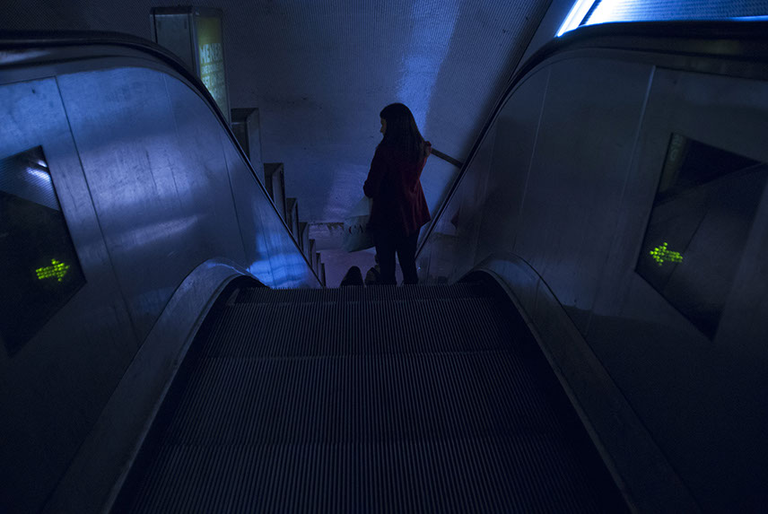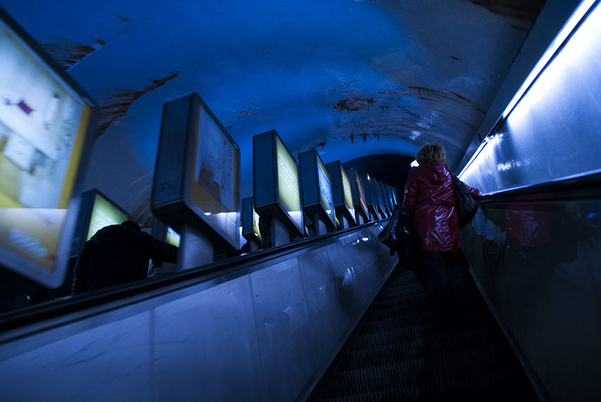 L’accueil glacial du tourniquet métallique, hérissé du cliquetis grinçant de la validation de mon ticket, me plonge directement dans l’univers journalier des usagers.